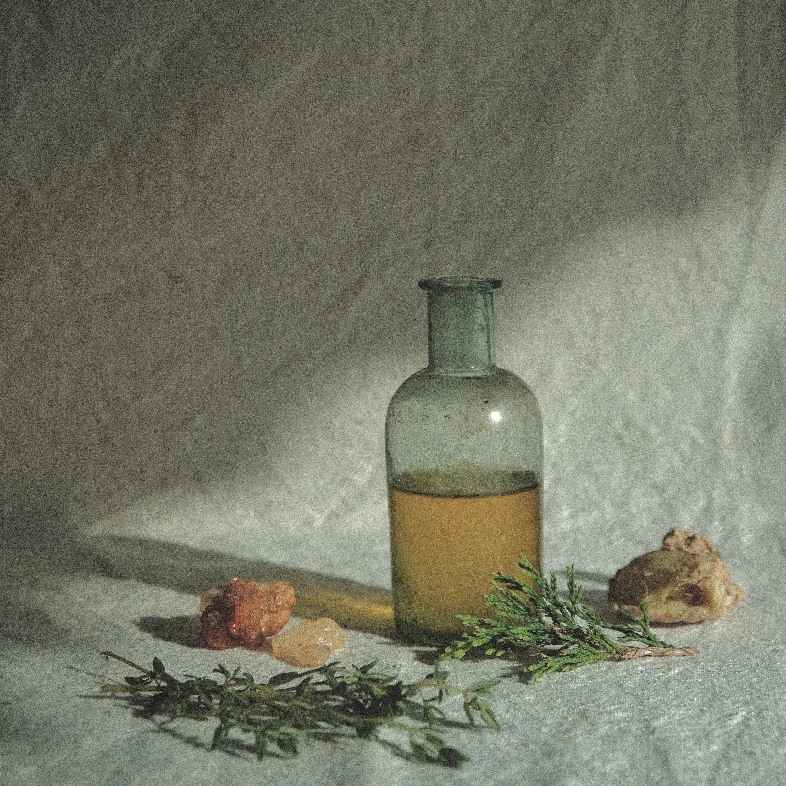 Ingredients: Frankincense | Myrrh | Ginger | Thyme | Linalool | Ceder | Grape-seeds oil | Almond oil